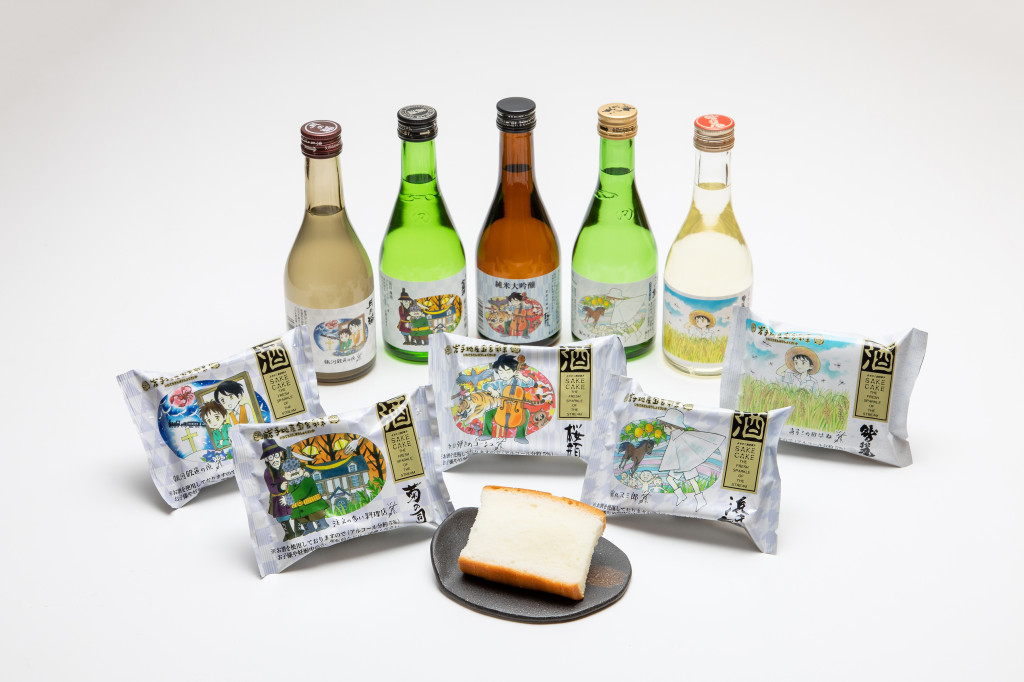 「酒ケーキ イーハトーブ」は宮沢賢治の作品の世界観を表現したイラストをパッケージにとデザイン開発が始まり、地元花巻市在住の漫画家、池野恋先生に童話『銀河鉄道の夜』『注文の多い料理店』『セロ弾きのゴーシュ』『風の又三郎』、詩集「春と修羅 第三集」収録の『あすこの田はね』のイラストを描いて頂きました。